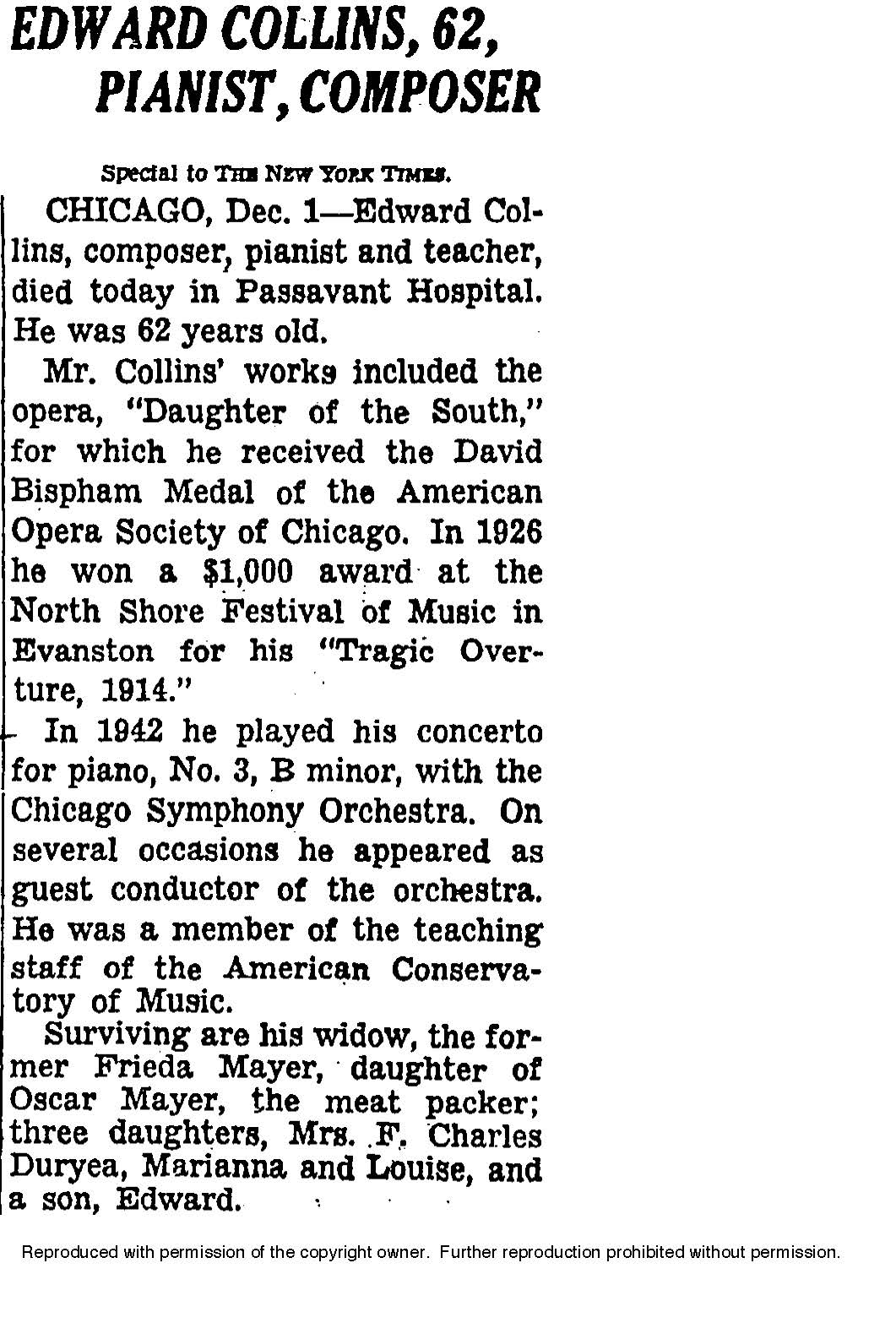 Music of Edward Joseph Collins CD Anthology Release Celebration Roosevelt University Chicago, 3 April 2012 From the program, previously unrecorded works for two pianos |