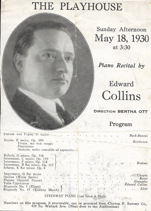 EJC recital program, The PlayHouse (Chicago, 18 May 1930) (pdf) |